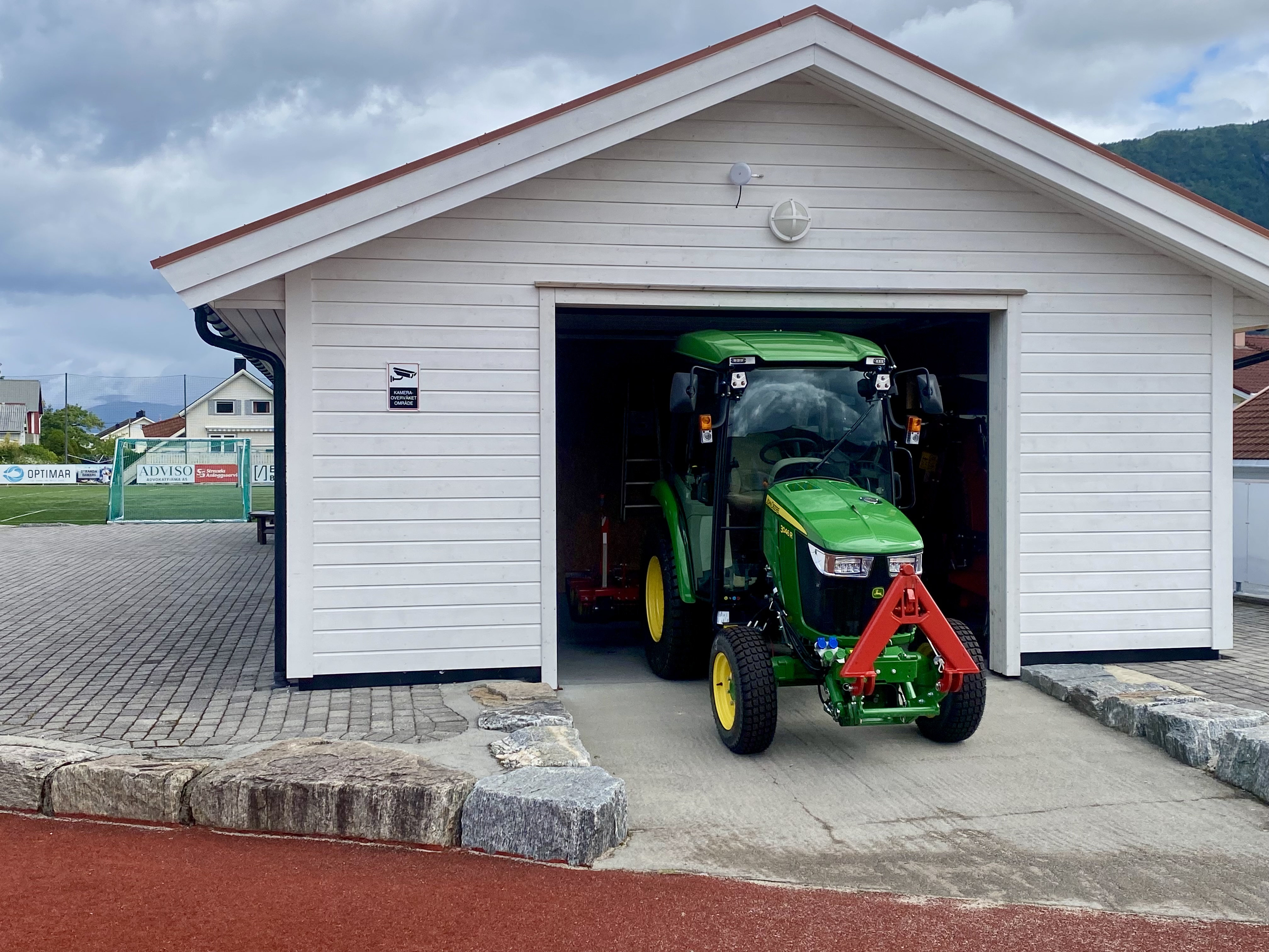 Etter mange år med ventetid og grubling så har Stranda Stadion endeleg ein eigen traktor med utstyr.